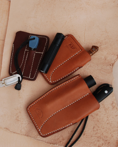 - The KSF Pocket Sheath has a sheath for a small knife as well as a slot to hold a firesteel, small flashlight or pen.